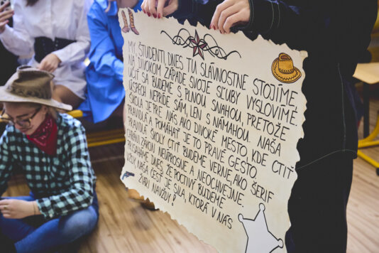 Tretiaci si pre prvákov pripravili zaujímavý program, aby ich "prijali" do študentského stavu.